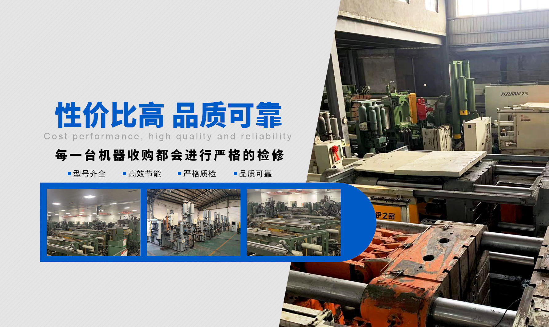 ? ? ? ? 在當(dāng)今市場競爭如此激烈、產(chǎn)品利潤日漸微薄的嚴(yán)峻形勢下,優(yōu)質(zhì)可靠的二手壓鑄機(jī)尤為凸顯其順應(yīng)壓鑄行業(yè)市場的極大優(yōu)勢,我們限度的為客戶減少項(xiàng)目投資風(fēng)險、降低投資成本、優(yōu)化整合運(yùn)作資金。同時,盤活閑置二手設(shè)備,創(chuàng)造社會剩余價值,為推動我國循環(huán)經(jīng)濟(jì)建設(shè)貢獻(xiàn)力量!